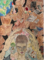 2.1 Kinderrechte - (k)ein Märchen: Der Beitrag von Carl Bargl, Jahrgangsstufe 7, des Schuldorfes Bergstraße in Seeheim-Jugenheim macht eindrucksvoll sichtbar, wie zerbrechlich das Recht von Kindern auf Schutz heute ist. Die schützenden Hände wirken wie ein schmaler, bröckelnder Schutzwall gegen Krieg, Social Media, Fake News, Gewalt, Naturkatastrophen und Hass. Gleichzeitig leuchtet um den Jungen eine farbige, märchenhafte Welt, in der Kinderrechte wie zarte Seifenblasen schimmern. Die Bildidee zeigt, dass dieser Schutz auch in Europa an einem dünnen Faden hängt und jederzeit reißen kann. So verbindet das Werk kindliche Hoffnungen mit einer sehr reifen Reflexion über Menschen- und Kinderrechte in unserem heutigen Europa.