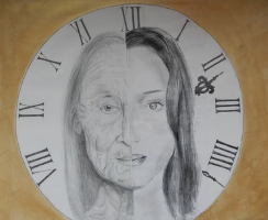 Das Bild von Carlotta Kresin (15 Jahre) - Jahrgangsstufe 9, Freiherr-vom-Stein-Schule - Europaschule in Gladenbachvon macht sichtbar, wie sich das europäische Frauenbild im Laufe der Zeit unter Vorwürfen, Vorurteilen und Ungerechtigkeit verändert hat. Die „Lebensuhr“ zeigt eindrucksvoll, wie sehr der Alterungsprozess für Frauen mit Druck, Erwartungen und Abwertung verbunden ist. Besonders stark ist die Botschaft, dass Frauen in jedem Alter einfach Mensch sein dürfen – sichtbar, frei und respektiert. Die Arbeit setzt ein wichtiges Zeichen gegen Unsichtbarkeit und Diskriminierung und verdient große Wertschätzung und Dank. Europabezug: Das europäische Bild der Frau im Wandel der Zeit ist geprägt von Vorwürfen, Vorurteilen und Ungerechtigkeit. Besonders der Alterungsprozess, dargestellt in meiner "Lebensuhr" , ist für Frauen sehr bedeutsam. Ihre Lebensuhr läuft "schneller" ab. Frauen erfahren, wenn sie nicht mehr jung und attraktiv sind, häufig Respektlosigkeit und Diskriminierung. Ich setze mich dafür ein, dass Frauen in jedem Alter so sein dürfen, wie sie wollen, nämlich einfach "Mensch sein" und dass man sie in jedem Alter schätzt und nicht abwertet. Es kann nicht sein, dass ältere Frauen "unsichtbar" werden.