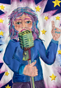 Lena Laske hat am 73. Europäischen Wettbewerb mit dem Modulthema 3-2 "Klare Stimme - offenes Ohr" teilgenommen und sich mit einem beeindruckenden Beitrag für die Bundesebene qualifiziert. Die Schülerin des Gymnasiums Philippinum in Weilburg setzt ein kraftvolles Zeichen für Meinungsfreiheit und Mitmenschlichkeit. Das Bild zeigt ein junges Mädchen, das mutig ihre Stimme erhebt – in ausdrucksstarken Farben und klarer Gestaltung wird ihre Entschlossenheit spürbar. Sie steht für all jene ein, die keine Stimme haben, und kämpft mit Herz und Verstand. Lena ermutigt dazu, hinzusehen, zu sprechen und für Europas Werte einzustehen.