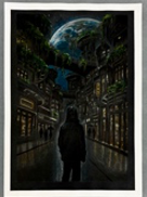 Besonders hervorzuheben ist die kontrastreiche Gestaltung: Während die hohen, dicht aneinandergereihten Häuser durch ihre leuchtenden Fenster Wärme suggerieren, unterstreicht die dunkle, fast monochrome Umgebung eine spürbare Einsamkeit. Die zentrale, anonyme Gestalt im Vordergrund wird zum Mahnmal für jene Menschen, für die das Grundbedürfnis Wohnen durch globale Krisen – symbolisiert durch den markanten Himmelskörper – gefährdet ist. Einen hoffnungsvollen Gegenakzent setzt die konsequente Begrünung der Architektur als Zeichen für die europäische Vision nachhaltiger und lebenswerter Städte. Ein gestalterisch herausragendes und inhaltlich tiefgründiges Werk, das völlig verdient die Bundesebene erreicht hat.