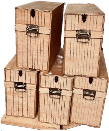 Die Folge-Aussteller nehmen Kontakt mit dem vorherigen Aussteller auf, um den Übergabe- und Abholtermin festzulegen. Für den Transport: 5 Kisten mit je 33 x 58 x 75 (BxHxL)